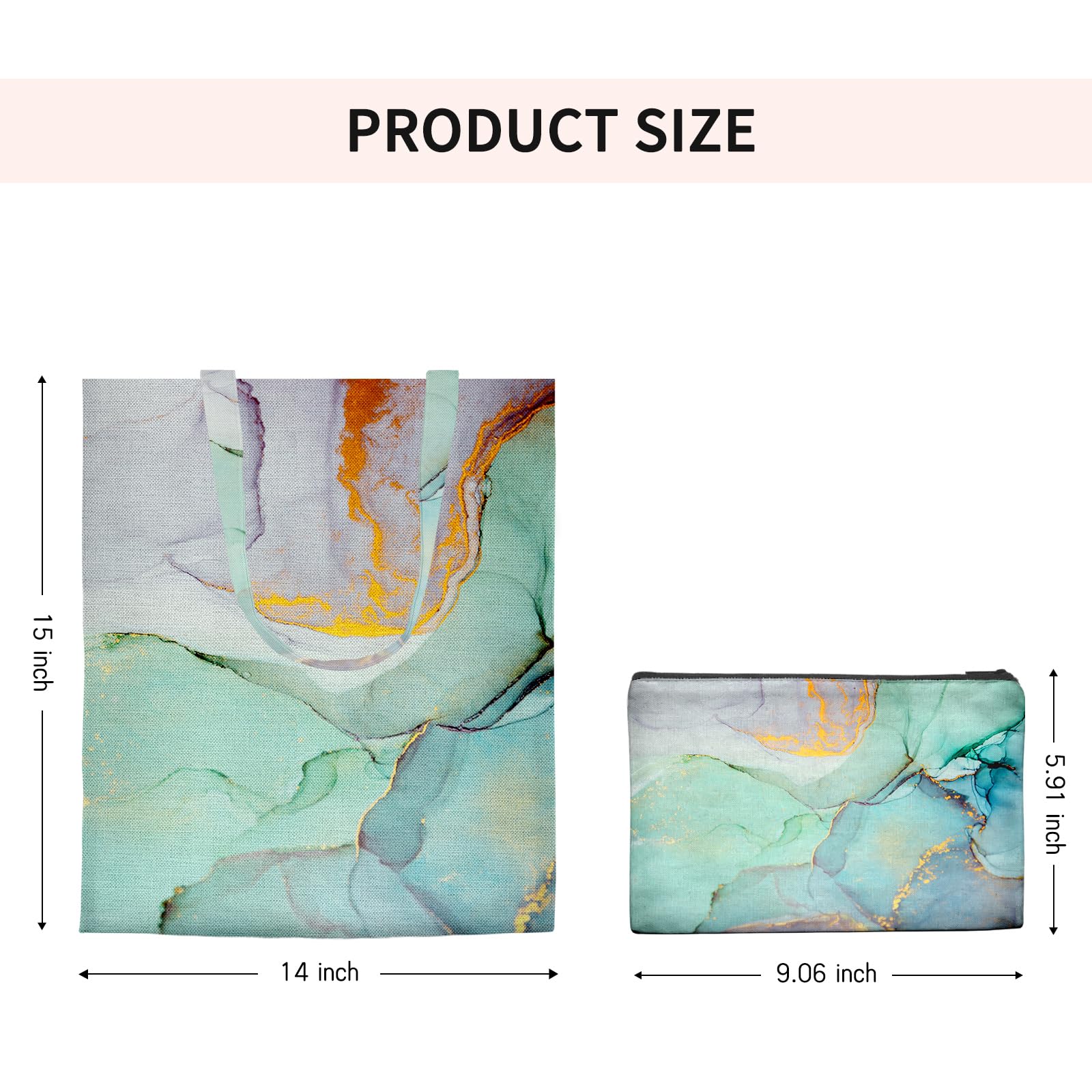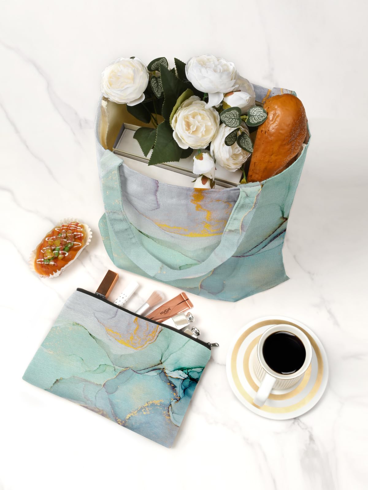 Colorful Marble Canvas Tote Bag & Make Up Bag Aesthetic for Women,Reusable Cloth Cotton Bags Gift